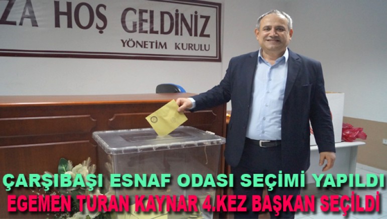 Mevcut başkan Egemen Turan Kaynar 702 üyesi bulunan Çarşıbaşı Esnaf ve Sanatkârlar Odası Seçiminde kullanılan oyların tamamını alarak 4 yıllık süre için tekrar başkan seçildi